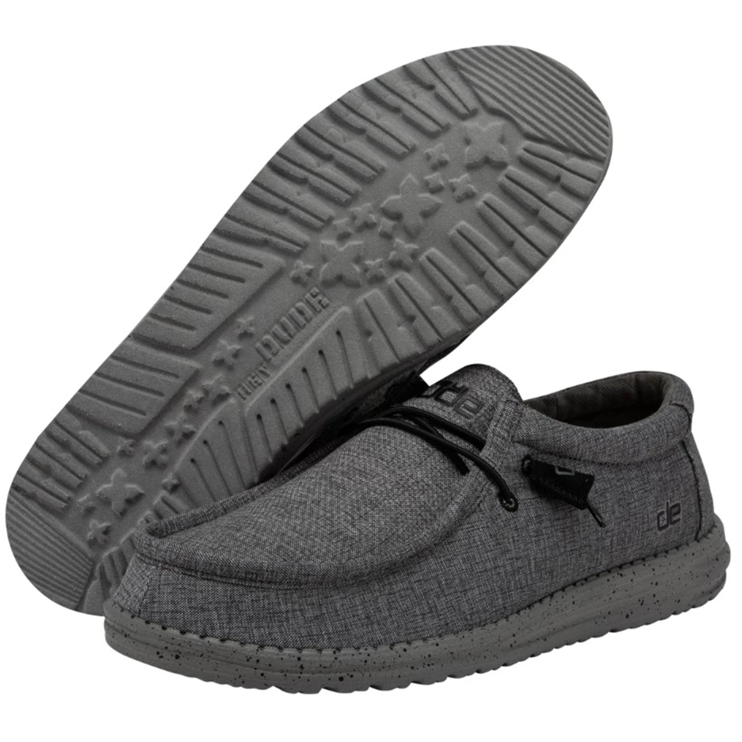 These men’s shoes from Hey Dude are a steel color with a grey sole! Hey Dude shoes are comfortable and very light weight! If you wear a half size, we suggest choosing the next up.