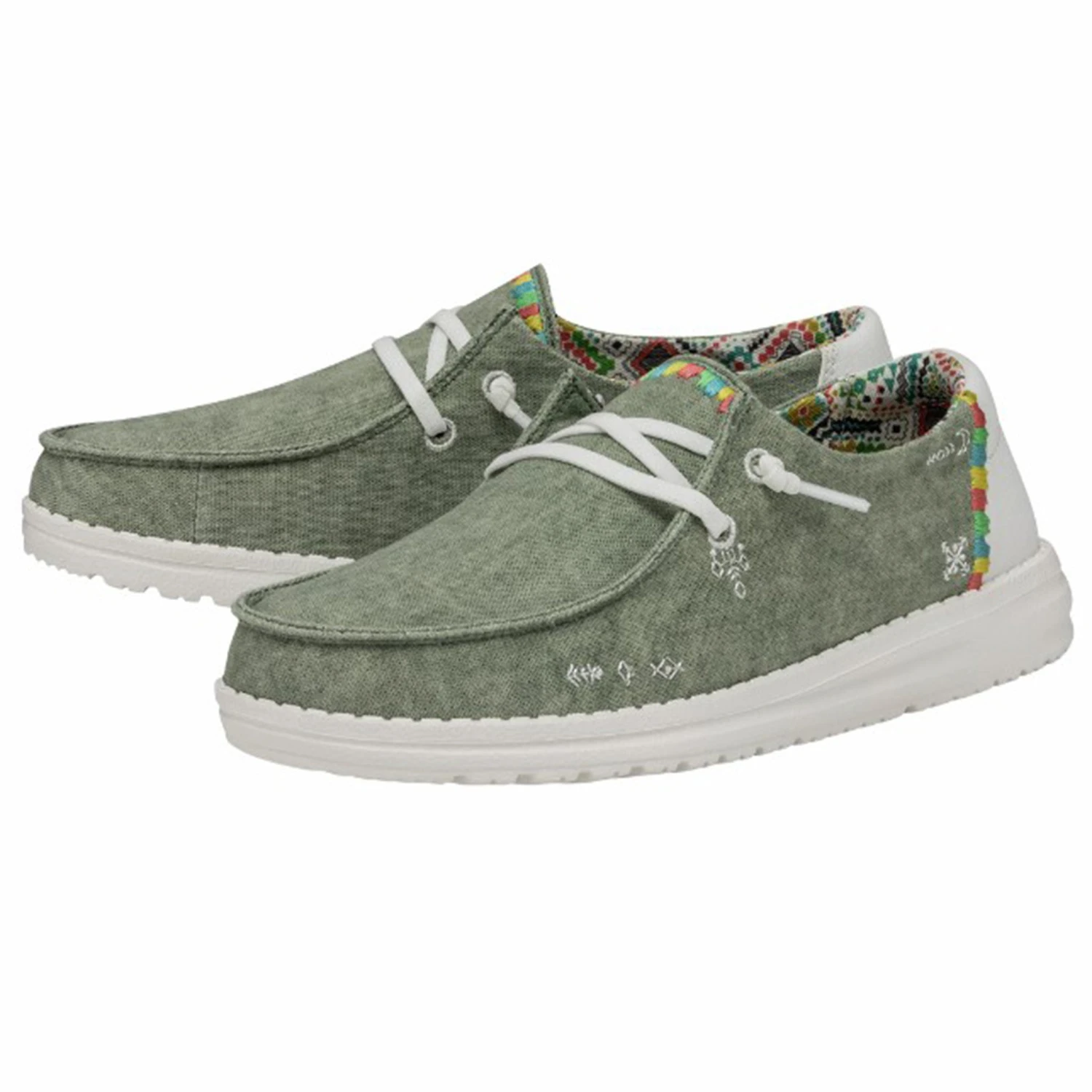 Hey Dude’s most iconic moc meets lightly washed materials and boho-chic inspired, hand-stitched details that come together for a customized look. The Wendy Boho collection features a breathable, cotton-blend upper and lined with the same materials for all day festivities. Finished off on an ultralight outsole and our easy-on system with no-tie cotton laces to keep the comfort going all day long.