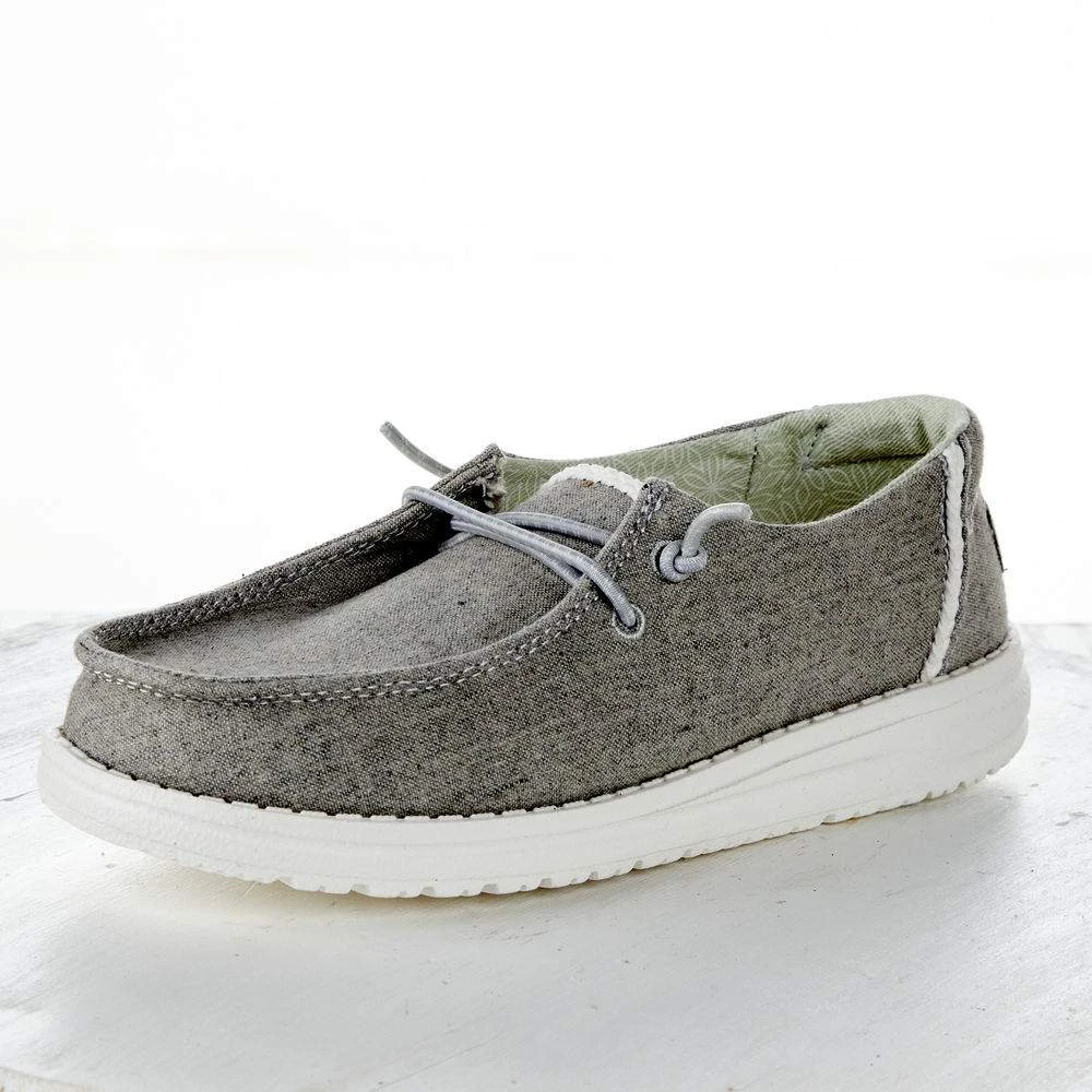 This particular Chambray version of the Wendy collection introduces an iconic low top moc with soft chambray-cotton throughout. They are soft, breathable blend of cotton and canvas. This shoe is lined with a leather-lined insole for comfort while featuring the easy-on system with elastic laces and ultralight outsole.