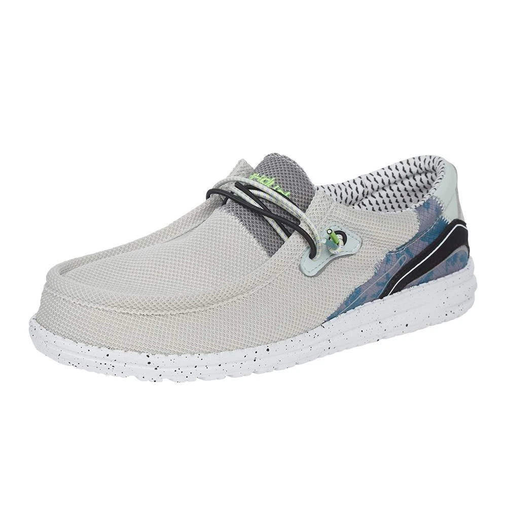 The Hey Dude Men’s Wally Hawk White Palms Casual Shoes are a retro style loafer with a colorful tonal design. They are a fun spin on the classic Hey Dude Wally shoes. They offer the same comfy cushioned insole, flex & fold outsole and killer style you love in a Wally.