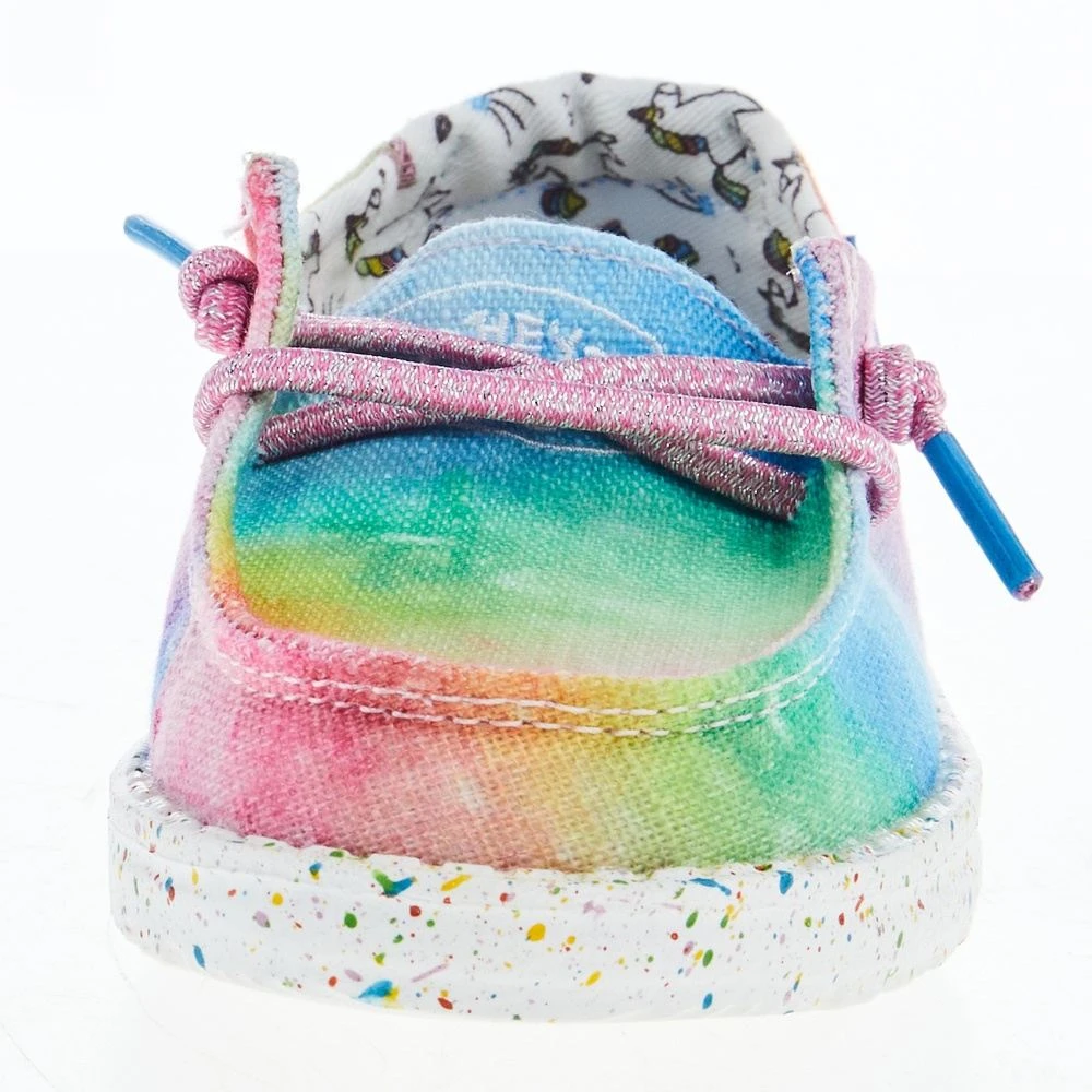 In materials chosen to reflect the imagination and individuality of today’s kids, constructed with a cotton-blend upper and finished off on an ultralight outsole and an easy-on system with elastic laces, to keep her going all day!