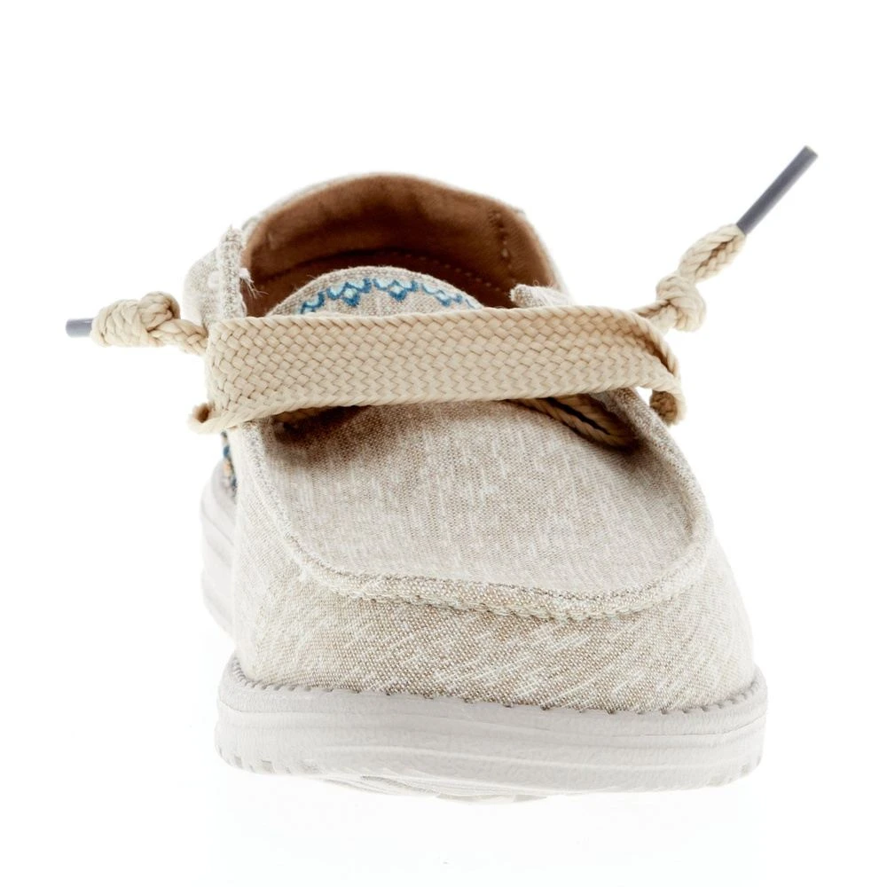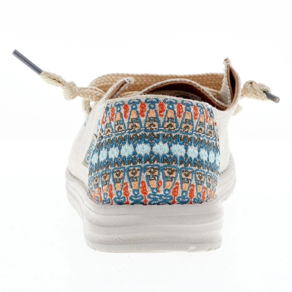 Our classic low-top moc in a breathable, chambray-blend upper and hand-stitched details. The Wendy Flora collection is perfect for everyday wear. Featuring our easy-on system with wide cotton laces and an ultralight outsole for total comfort. With stitched flowers inspired by antique Florentine embroidery. Just right for padding across a summer lawn.