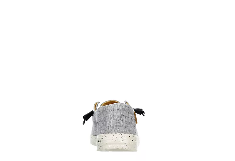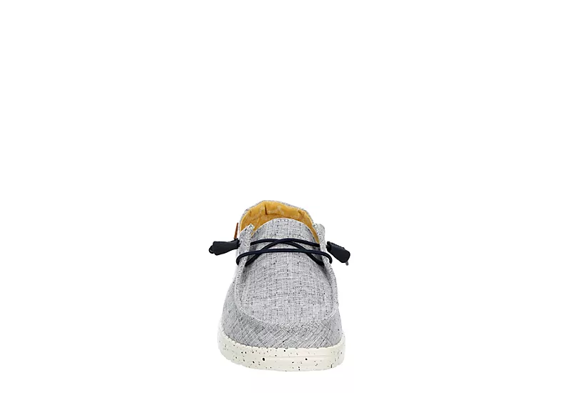 Relax into your passion with the HEYDUDE Wendy Chambray women’s slip-on sneaker. With a soft chambray canvas upper featuring elastic laces for a secure fit, this sneaker is machine washable for easy maintenance. The removable Memory Foam insole and leather lining offer ergonomic support and cushioning, while the ultralight outsole sets you free to explore unfettered.