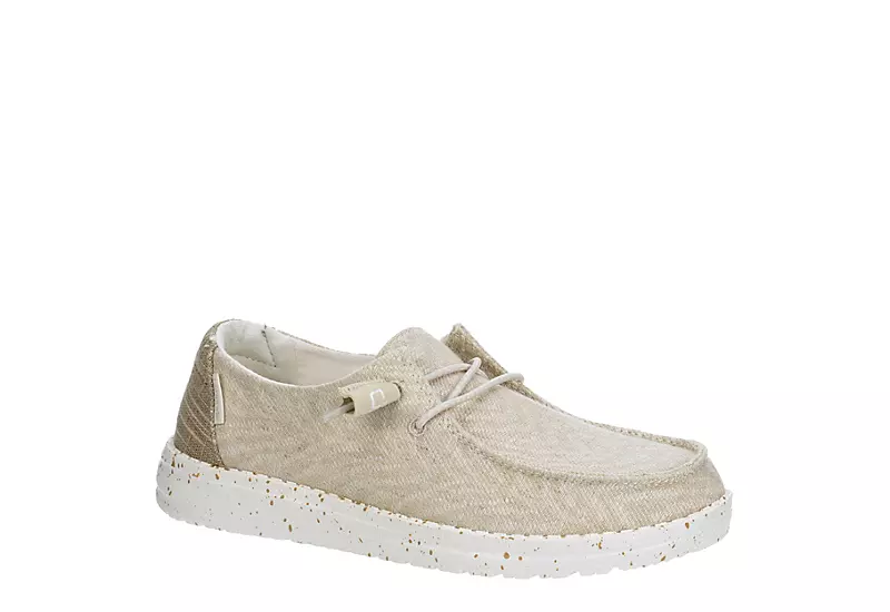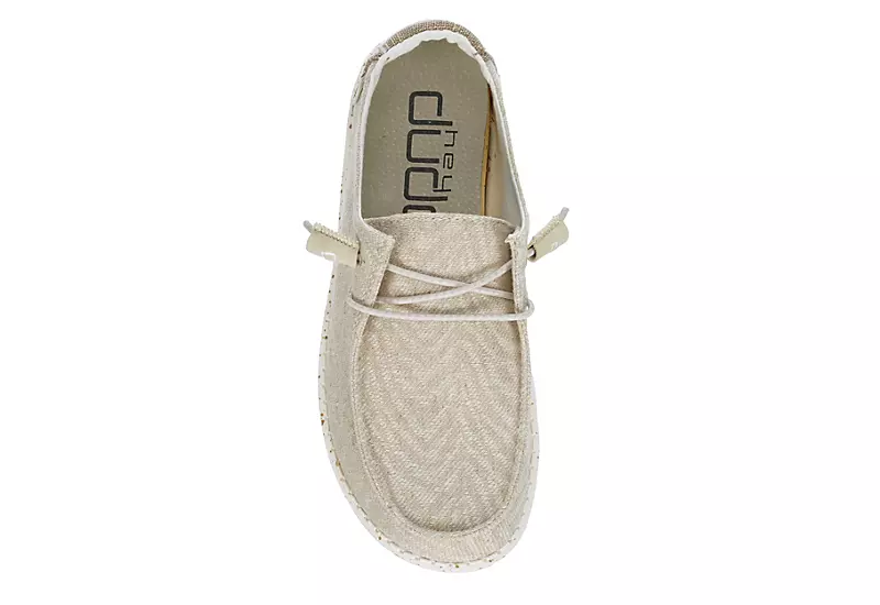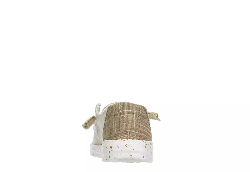 Relax into your passion with the HEYDUDE Wendy Sox Blend women’s slip-on sneaker. With a textile upper featuring woven comfort and cotton lining for breathability, this sneaker is machine washable for easy maintenance. The removable Memory Foam insole and leather lining offer ergonomic comfort and cushioning while the ultralight EVA outsole sets you free to explore unfettered.