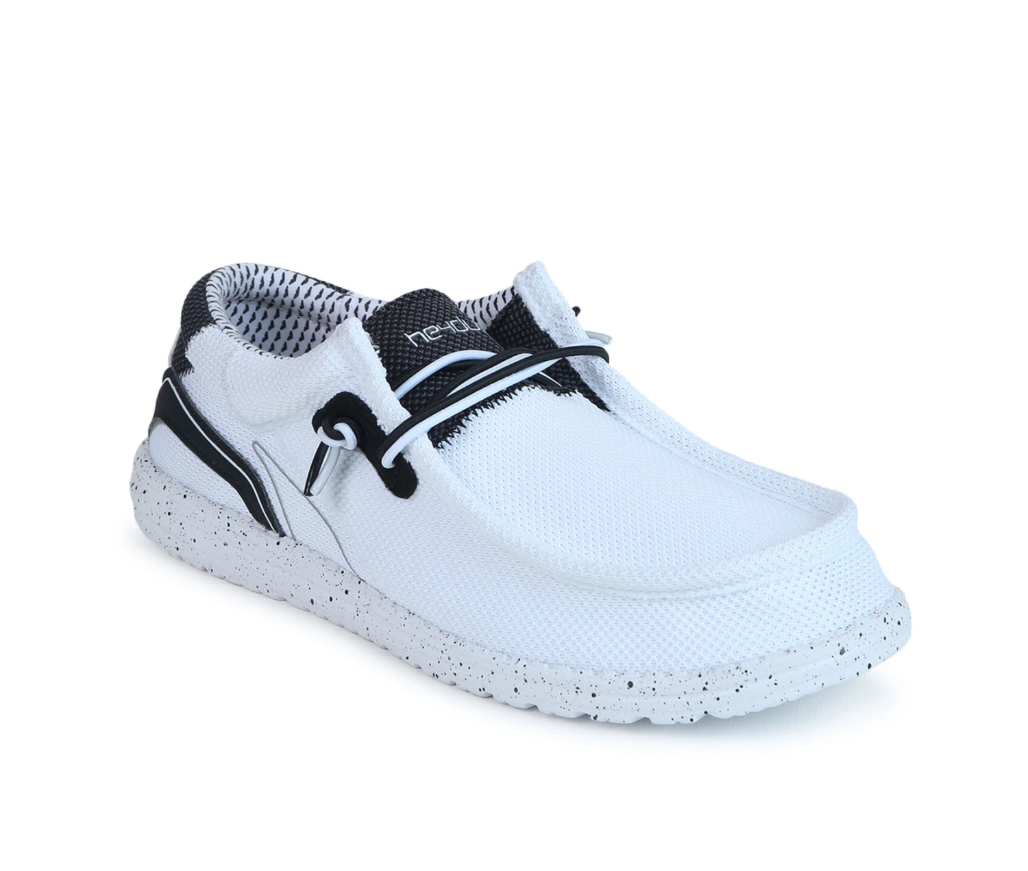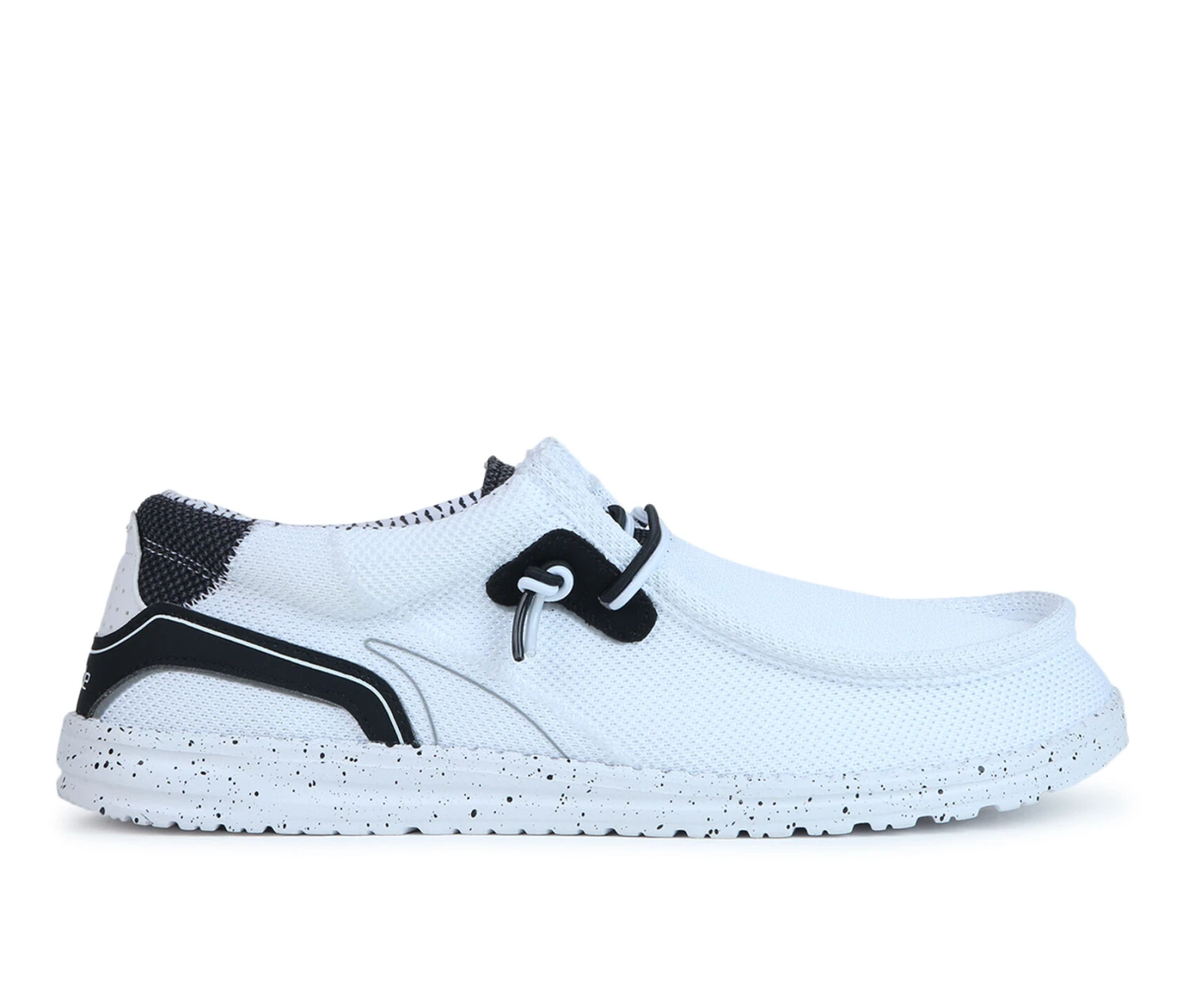 - A cushioned leather footbed, double stretch drawcord laces, and a fun printed lining.