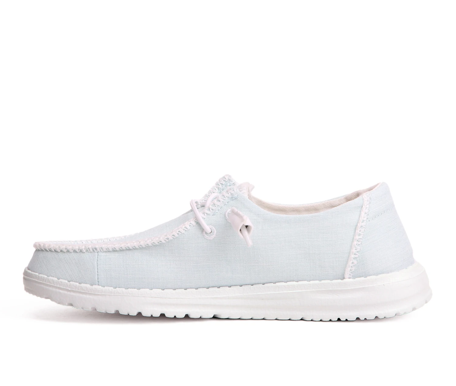 - Stretch, chambray-blend upper